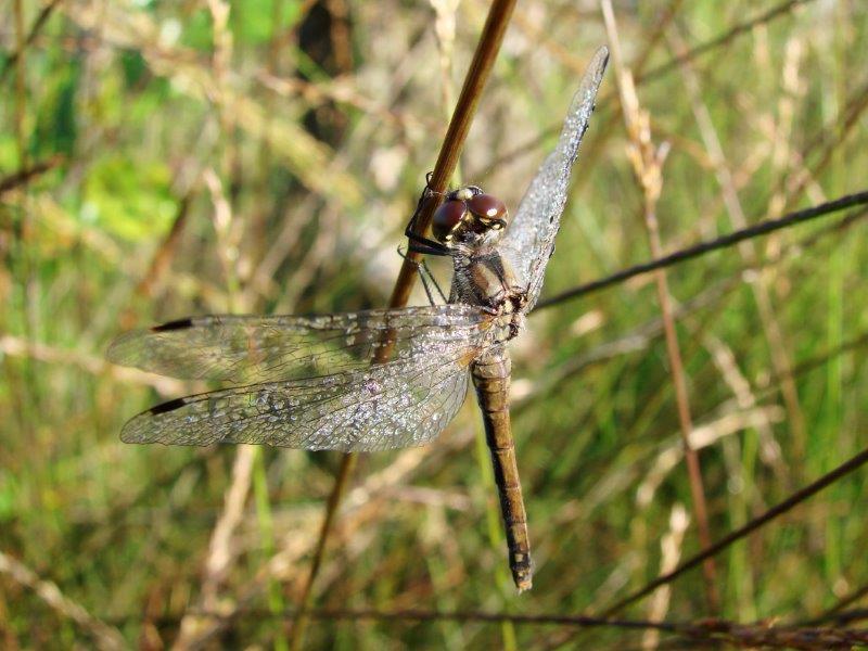 Aber sonst ist das Leben der Libellen einige Sätze wert: Vorwiegend in der Nähe von Gewässern anzutreffen bevorzugen sie grundsätzlich eher stehende Refugien wie Teiche und Tümpel. So fühlen sie sich auch im Emsdettener Venn sehr wohl, wie an den Bildern der Schwarzen Heidelibelle plus Artgenossen unschwer zu erkennen ist. Kein Wunder, Dank des Glyphosatverbotes in Naturschutzgebieten finden sie hier noch ein reichliches Angebot ihrer Hauptbeute, den Insekten.