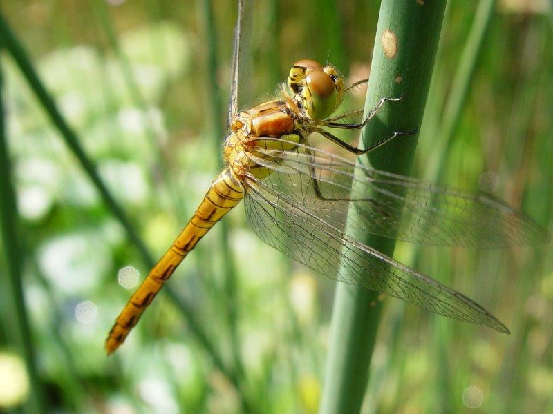 Schon von weitem stechen einem die roten, blauen, grünen etc. Flugkünstler mit ihren unabhängig voneinander einsetzbaren Doppelschwingen ins Auge, die selbst zu Schweb- oder Rückwärtsflug befähigen. Wobei, nebenbei bemerkt, sie garnicht stechen können, weil das mangels Stachel schlichtweg nicht geht!