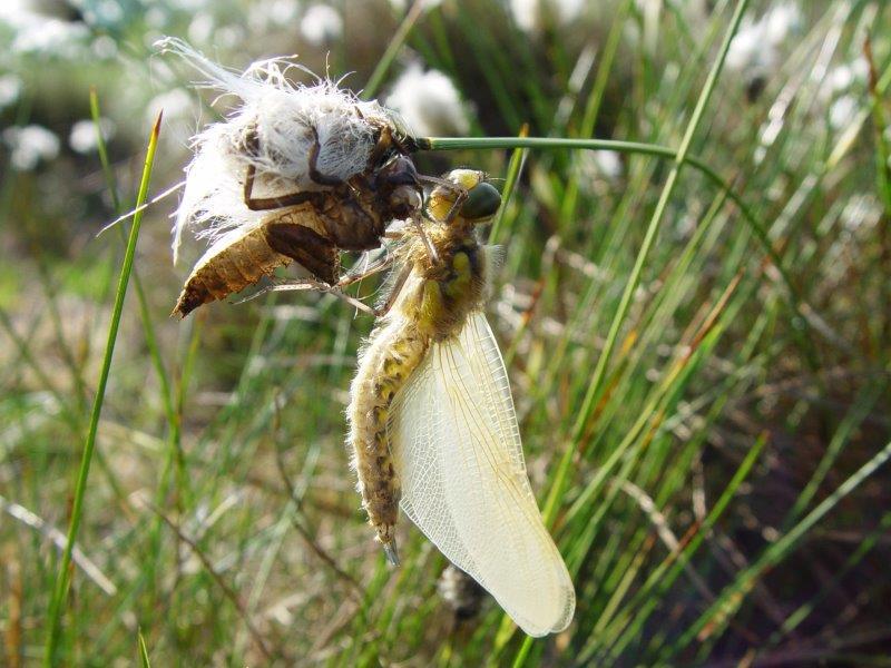 Dann wird es ihnen wohl “unten” zu langweilig. Außerdem soll man ja sehen, wie sie nach der letzten Häutung (es gibt kein Puppenstadium) als wunderschöne Vierflügler ihr Biotop bevölkern – sie verlassen das nasse Element.