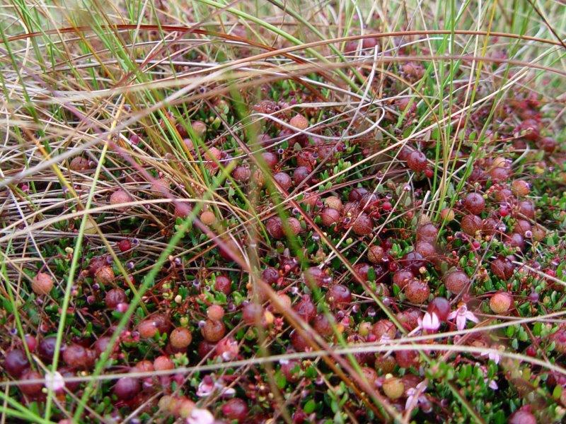 Also, Vaccinium oxycoccus ist ein immergrüner, fadenförmig am Boden wachsender Zwergstrauch, der nur bis max. sechs Zentimeter hoch wird. Er gedeiht natürlich nicht überall, sein Vorkommen beschränkt sich auf zirkumpolare Moorböden wie dem, der direkt in westlicher Richtung vor den Toren unserer Lieblingsstadt Emsdetten liegt. ![]()