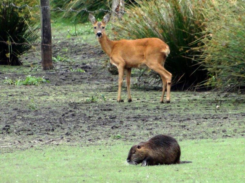 | Ursprung: Südamerika, verwilderte Farmtiere | Ursprung: Nordamerika, 1905 zur Jagd ausgesetzt | heimische Art – lebt in Fließgewässern |