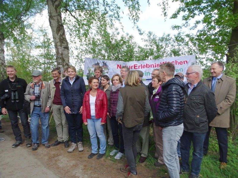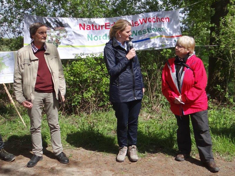 Nicht nur das Wetter war die ganze Zeit auf der Seite der Naturfreunde, auch Prominenz hatte sich eingefunden: Zwar musste Landrat Dr. Effing kurzfristig absagen, aber die oben schon erwähnte Ministerin Christina Schulze Föcking war vertreten, zeitweise auch der Bürgermeister Georg Moenikes.